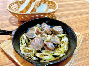 砂肝と長ネギのアヒージョ